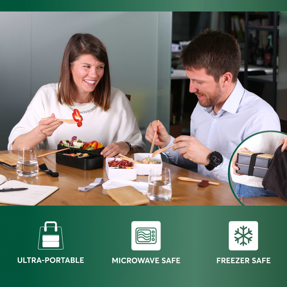 • Microwave, freezer and dishwasher-safe bento box that won’t retain smells or stains.