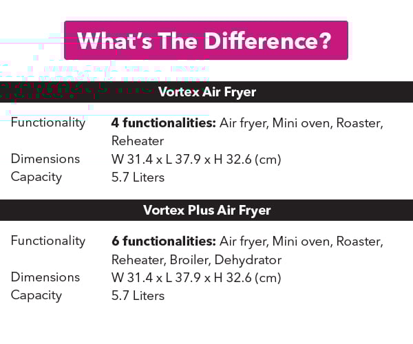 The Instant Vortex Plus Air Fryer lets you prepare a healthy yet delicious version of your favorite fried foods. With its EvenCrisp technology, you can achieve a perfect golden finish and crispy tender results for fresh or frozen foods, with little to no preheating time and using up to 95% less oil. Its versatility is unparalleled, with 6 functions for air frying, roasting, baking, dehydrating, broiling, and reheating.